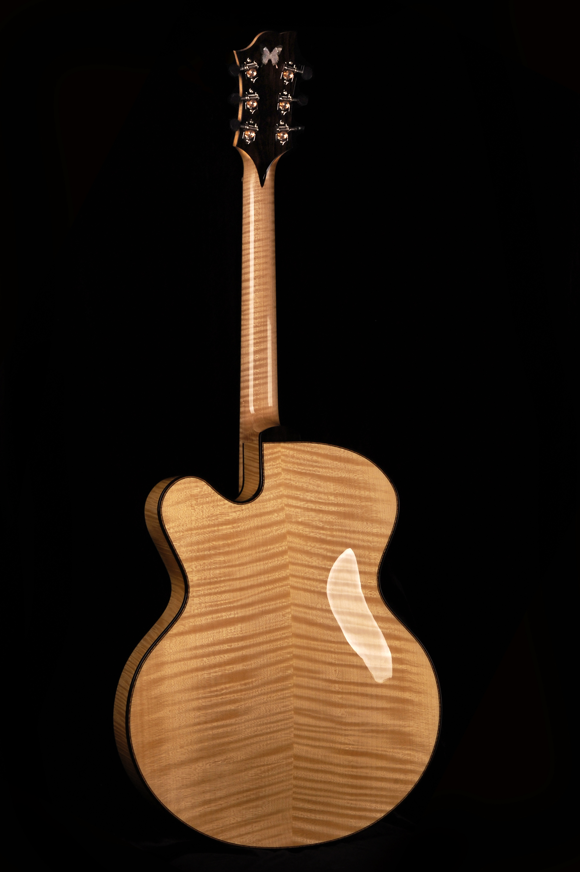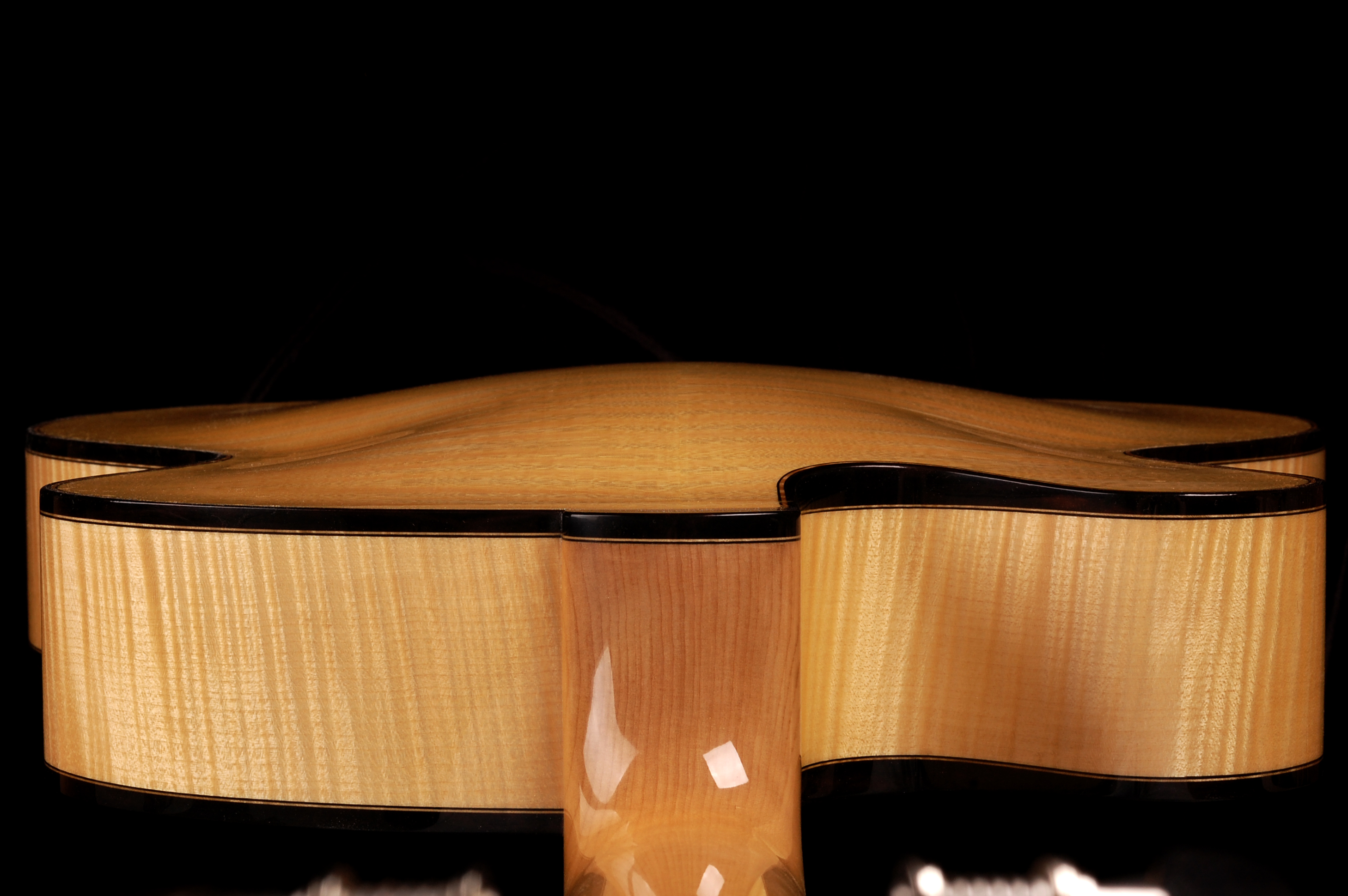 The craftsmanship and finish are immaculate. The sound is profoundly beautiful and versatile. The neck and finger board are a dream: super low action and so comfortable. The left hand seems to almost just rest and glide. I wanted a really simple, elegant and minimal design. He surpassed all expectations.
