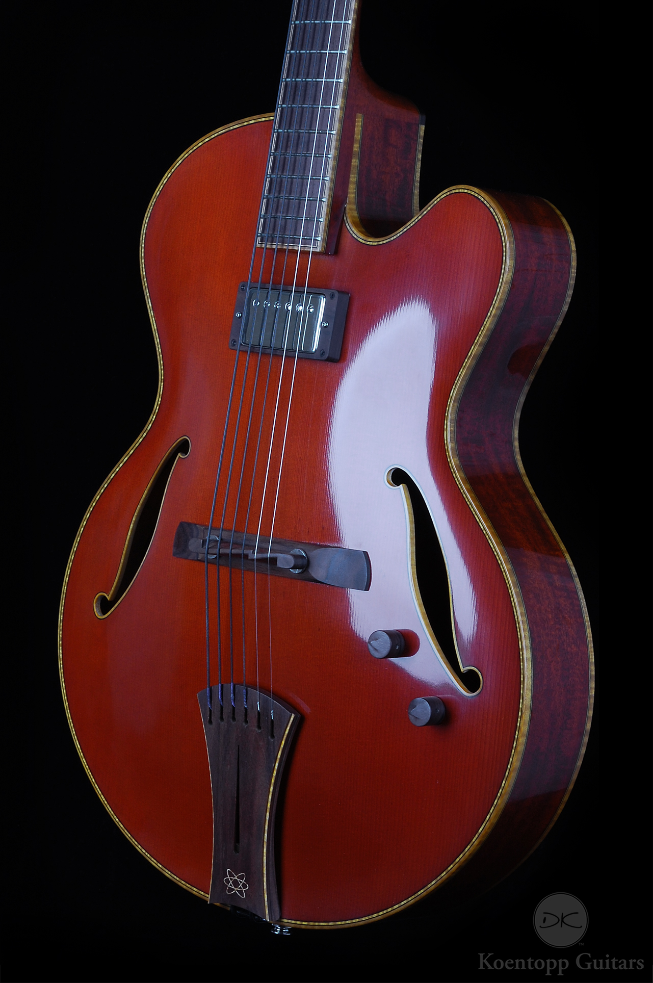 •DK logo in Maple and Atomic inlay in Maple and Mahogany