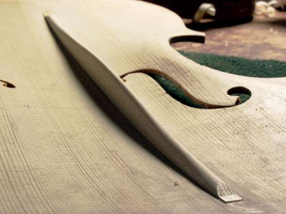 An arch, when designed correctly, is one of the strongest load bearing structures. Centuries ago, violin makers had mastered this “golden curve” and as a result, the arching became more mathematical, as did the bracing. Controlling the arching, the height, and the parameters of these curves, leaves the maker with a controlled way of experimenting with tonal possibilities just like adjusting the profiles of bracing bars.