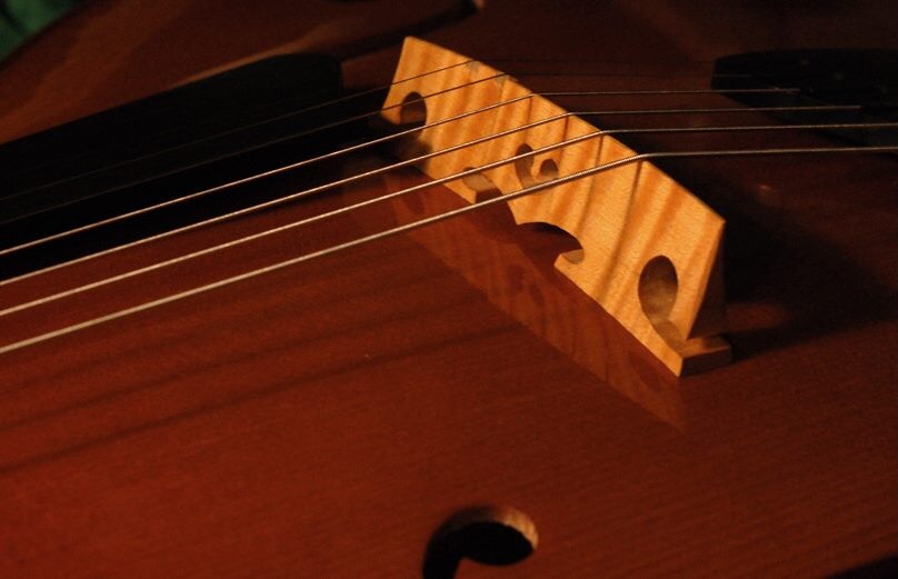 Bridge design is a very important element of the success of an instrument. A bridge must fit perfectly to the surface of the top like it was born there. I believe a bridge needs to be flexible while remaining dense. A bridge is the connection between the strings energy and the 5% of audible energy that one actually hears. As a maker, choosing the right design is a balance of form and function while still putting your own unique stamp on it. It is fascinating to look at the work of different makers to see how they have manipulated bridge design.