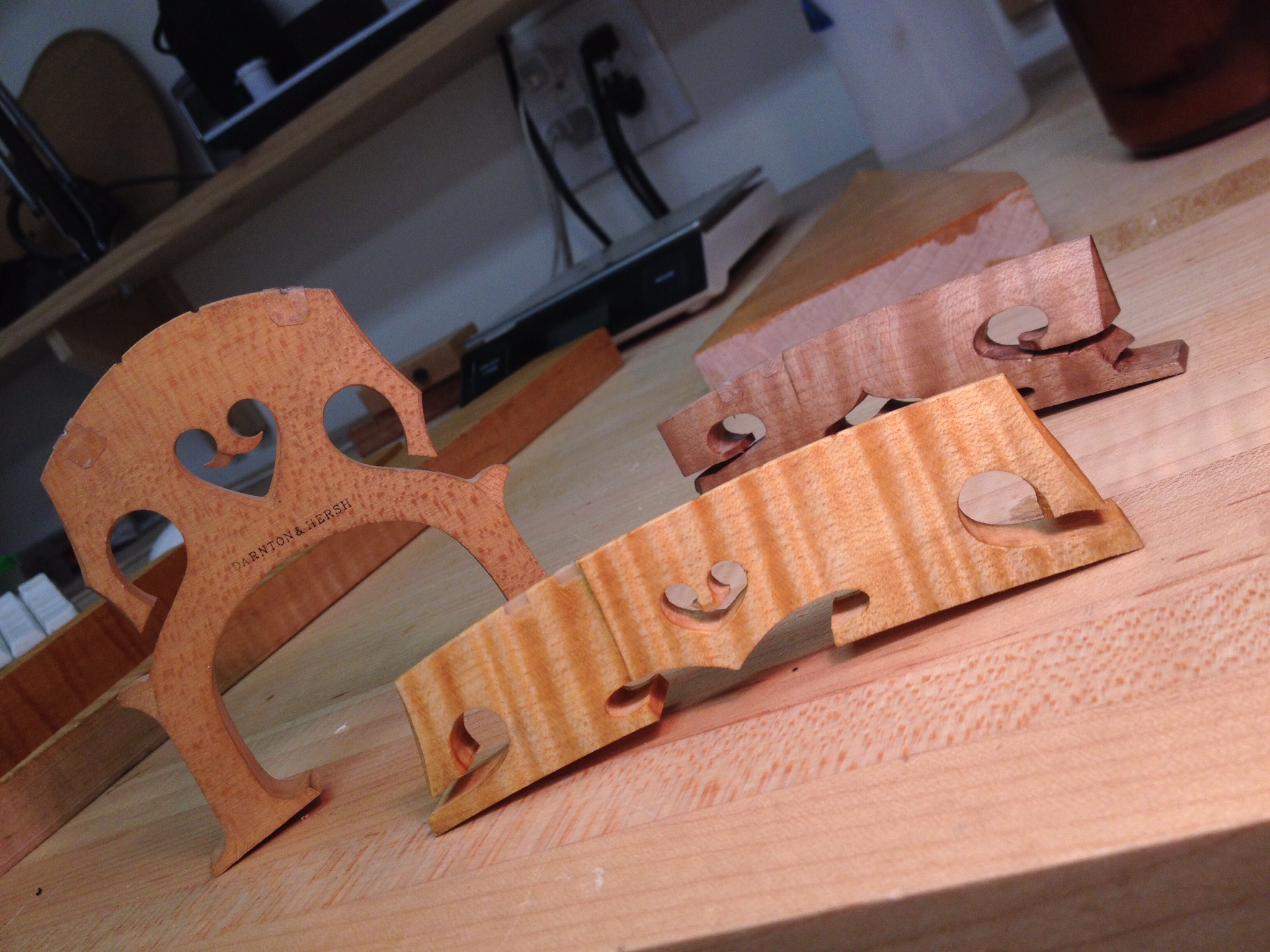 While I was working at Darnton and Hersh: Fine Violins, our work centered on the restoration and setup of violins, cellos and violas. Instruments would come into the shop that had been setup by other instrument makers including their hand cut bridges. My mentor, Michael Darnton and I would discuss why a bridge design was failing at captivating the true essence and vibrancy of a particular instrument. It is hard to put into words the right way to carve a bridge but in a nutshell, simple, graceful shapes with purpose are the center of every cutting decision. Smart curves provide strength and beauty while leaving behind only enough material that needs to be there. One of the best conversations I had with Michael, while I was working for him, was talking about shrinking ourselves down and riding the lines of a violin bridge in a small roller coaster cart. That night I had a dream I was swishing and swooshing in a small cart all over a violin bridge. Within a day my bridge work improved.