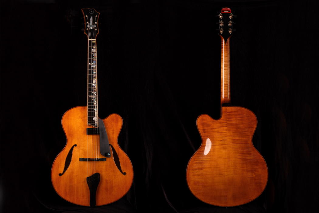 For his first Chicagoan Oval hole, all of our specifications had been determined. I knew what wood I was using. We kept it simple and clean with an Engelmann spruce top and Carpathian maple back and sides. That guitar I remembered rang like a bell. As soon as it was strung up it’s immediate bass response and overall clarity confused me because it already sounded so opened up. It’s x-bracing gave it power too, which made finger-style playing very fun.