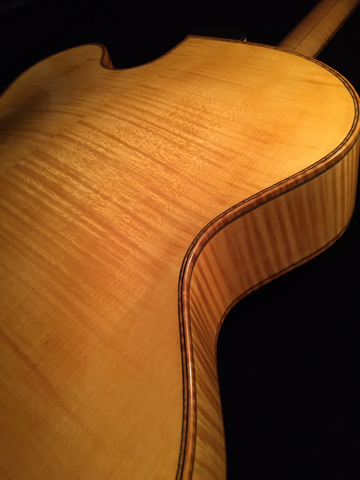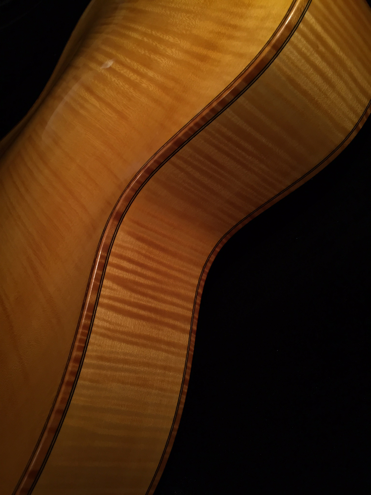 - Flame maple bindings with inner maple purfling