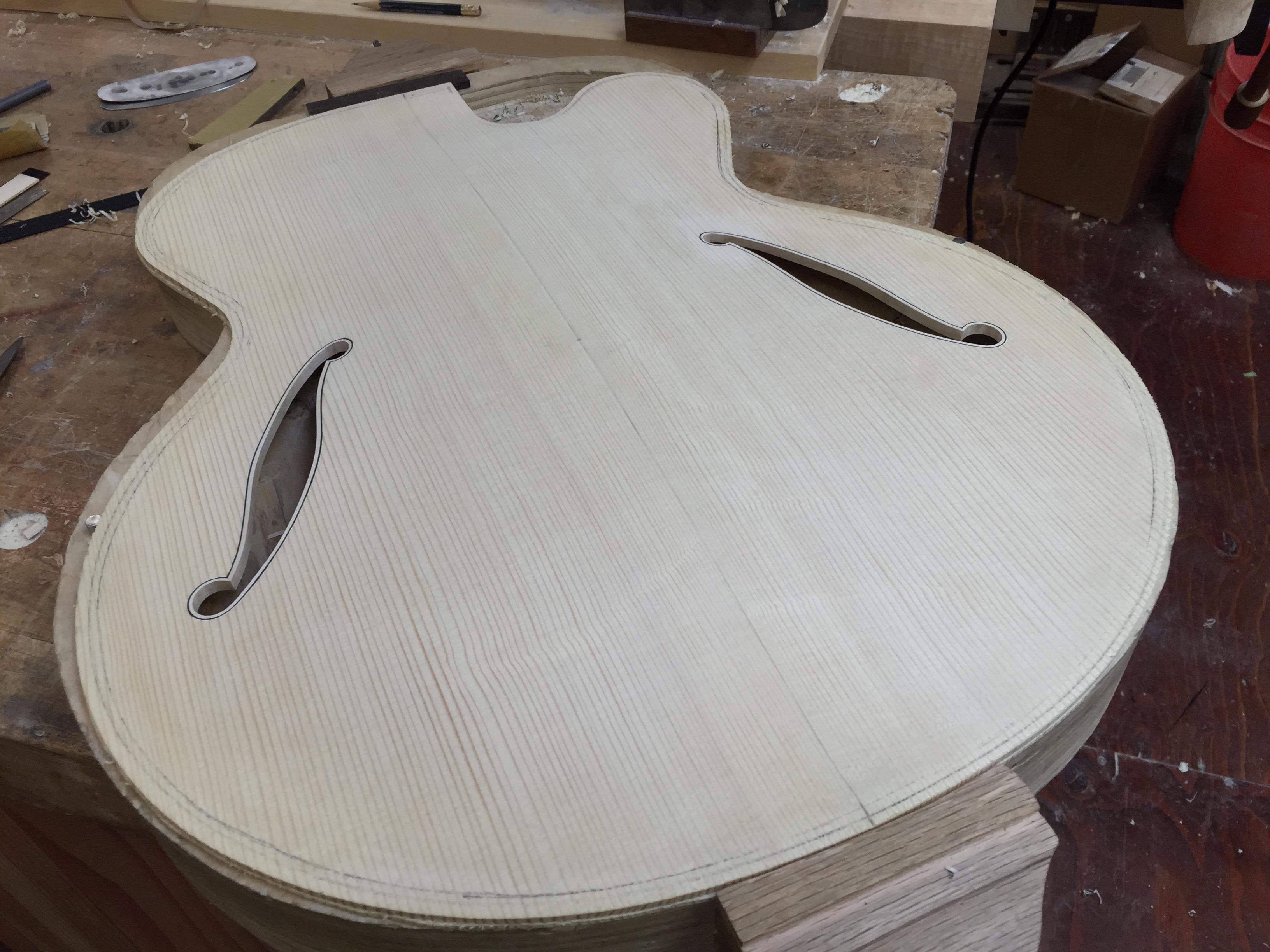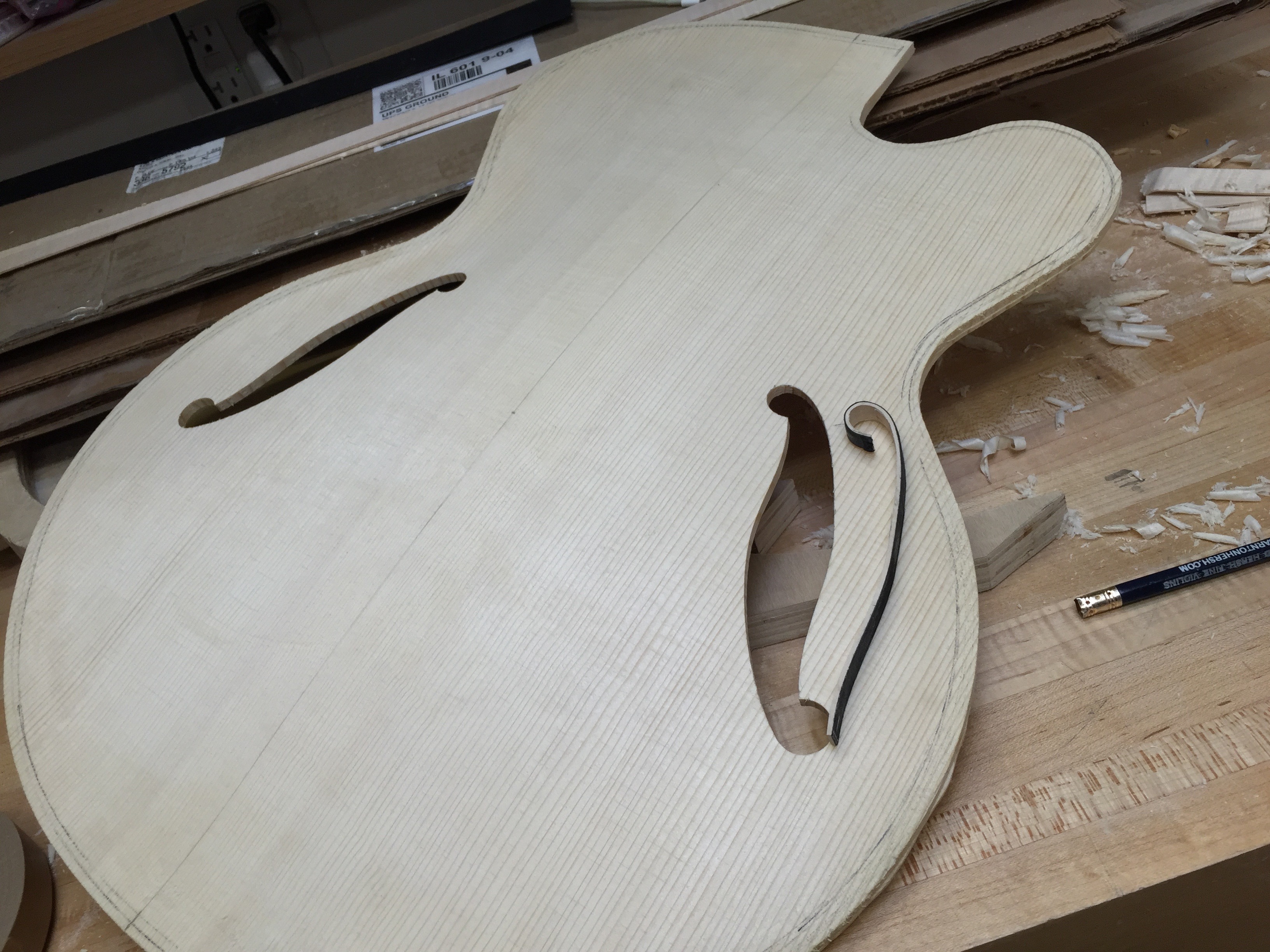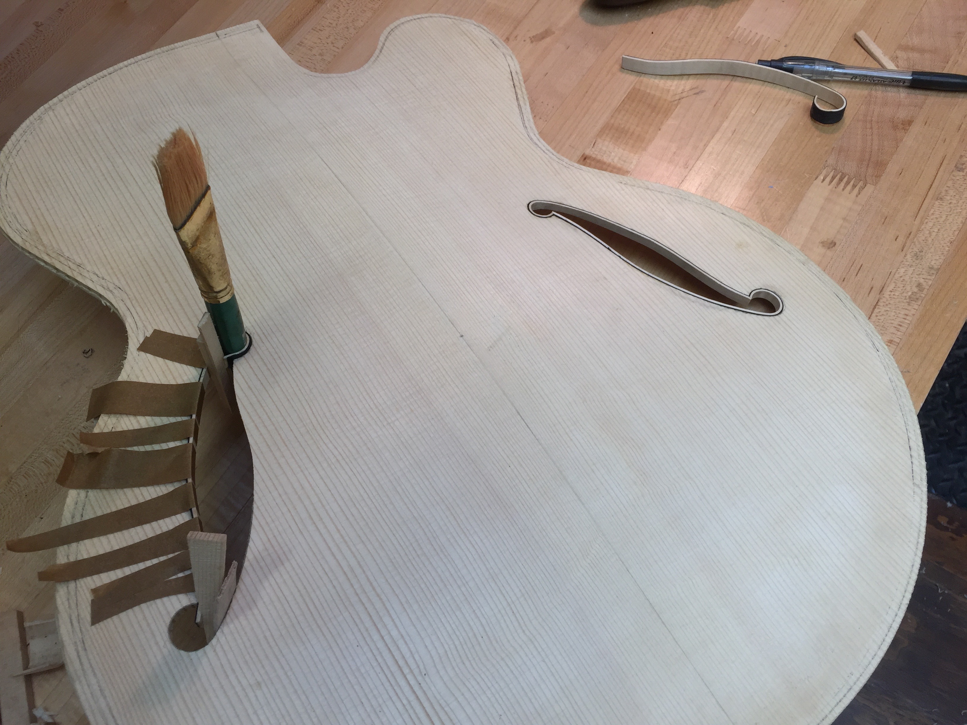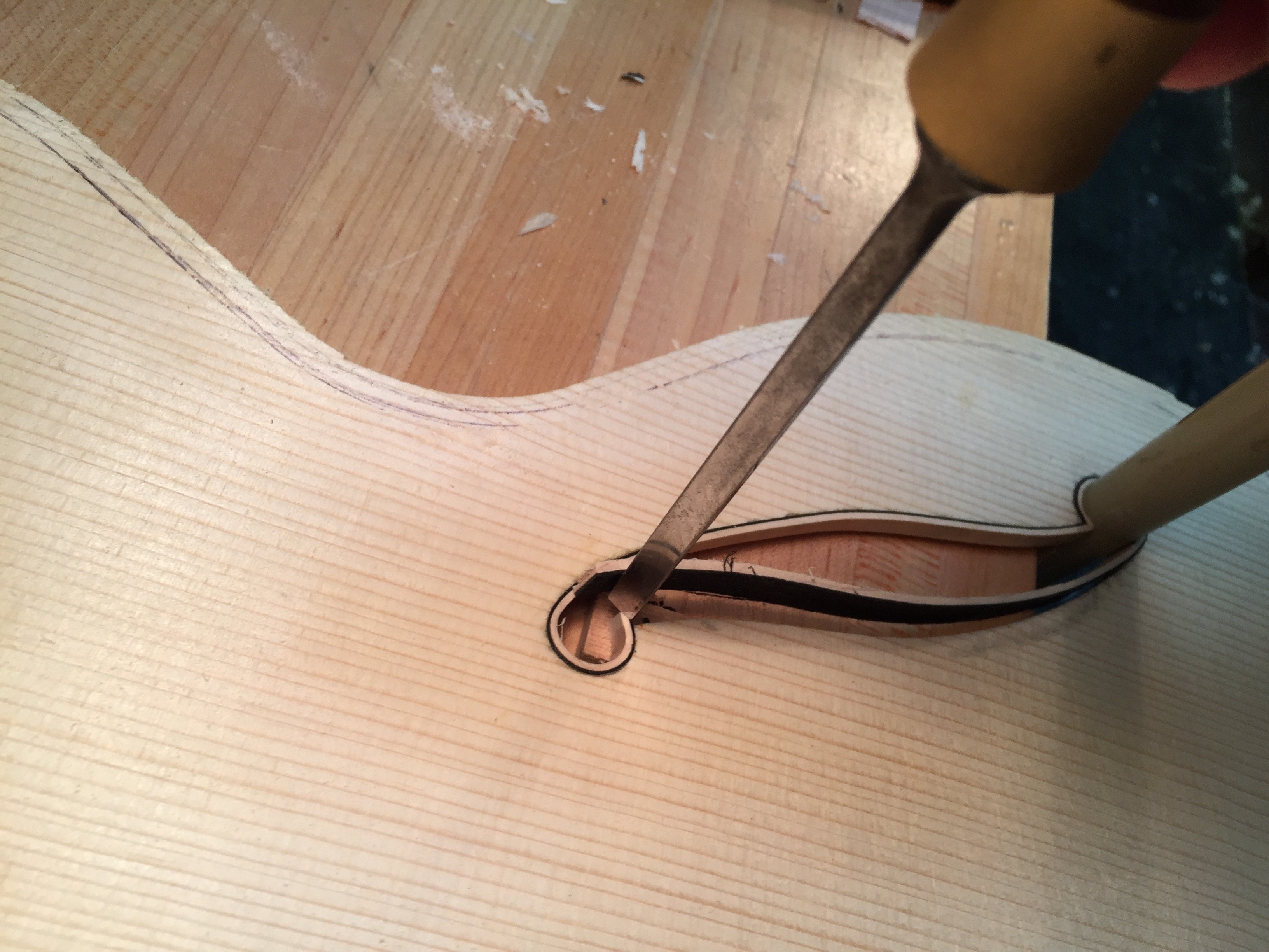 Binding an fhole with wood is one of those steps that takes patience. Here’s a pretty straight forward setup that makes it a little easier to install with a cleaner result.