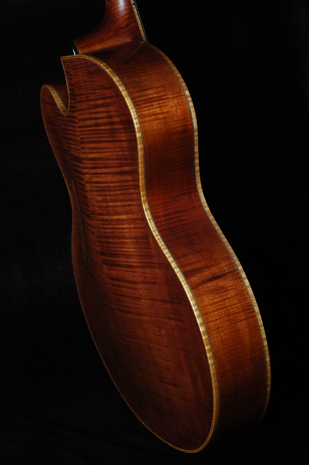 - Patina brown finish with contrasting maple binding
