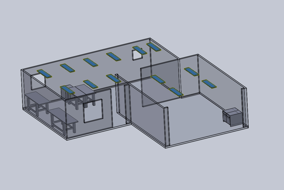 I spent a lot of time mocking up the new structure in CAD and rendering it with a light source that reflected the sun’s location. I also worked really hard on workbench and tool layout (that could be the subject of another post all together). I splurged a little and decided to install two skylights on the southern slope of the roof on the new addition. More natural light and more ventilation was the purpose here. I tested on the computer how the light would go through the openings and where it would illuminate in the room. The direct spotline will change thorughout the year but it happens to always fall right above my biggest workbench. The skylights have blackout blinds for when I need to use a single light source. I have now been working in the new shop for a week or two and I have yet to turn on an overhead light and sometimes I can smell the ocean breeze.