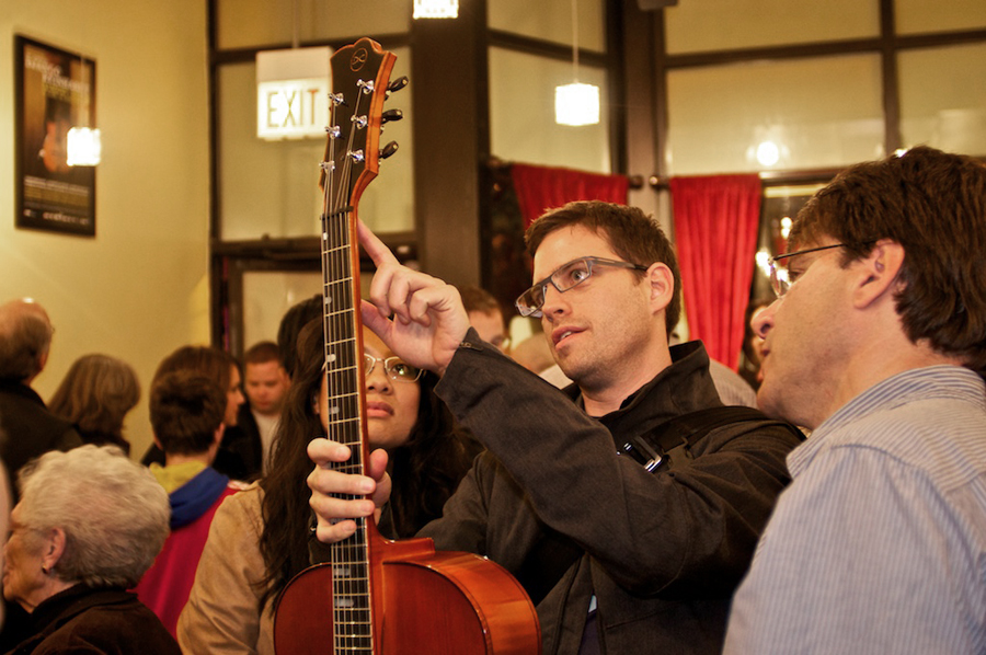 Our store opening on October 23rd was a huge success. The place was filled with warm bodies and smiles of friends and family. Never before have I seen a large group of my guitars come together and stand side by side. It was a great feeling like a family reuniting for one special night. Each Koentopp Guitar was brought by a proud owner to graciously show for a couple hours that evening.