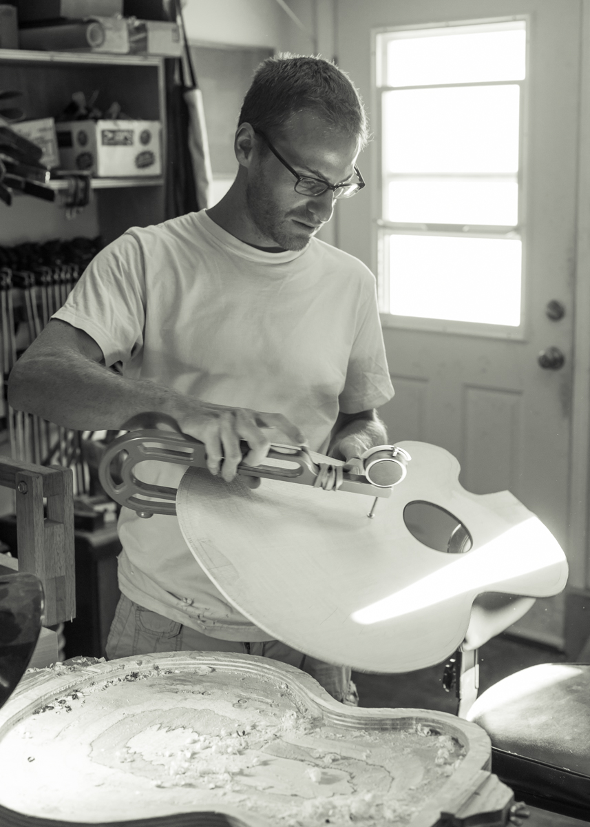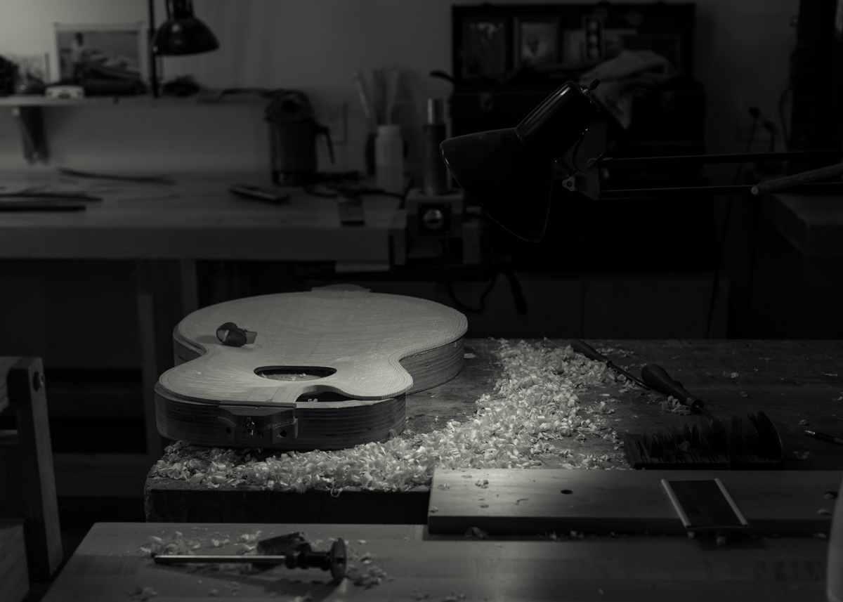 It’s always special when artists come together and Roman Cho is one amazing artist! Roman Cho is a professional photographer living in LA and his scope of work is inspiring to say the least. Roman reached out to me and asked to stop by the shop here and there to snap some photos while I worked. Roman shot photos as we talked about food, art, and woodworking. He captured some beautiful images of two archtops being built, a Chicagoan Oval hole and an Amati.