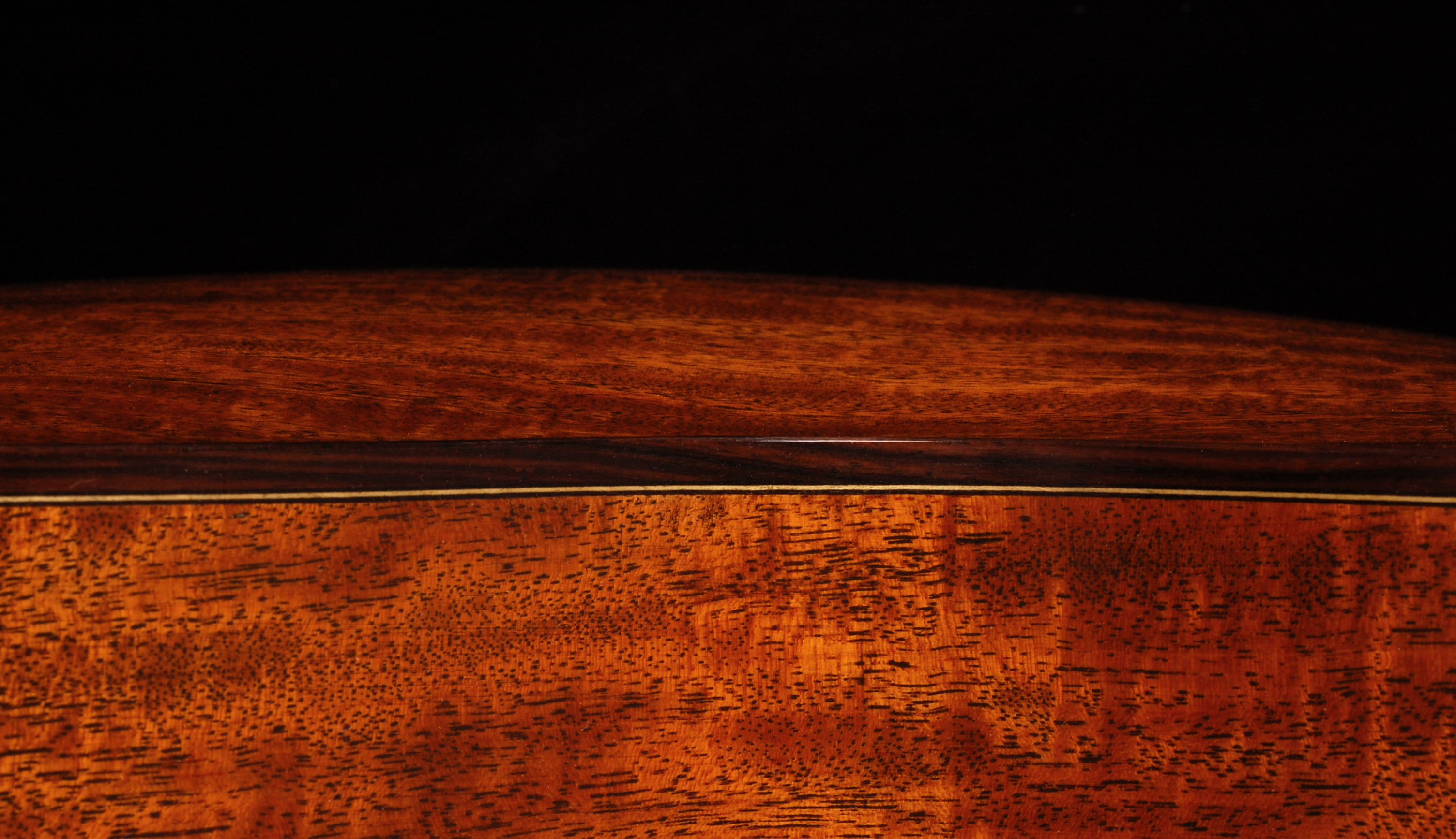 -Macassar Ebony bindings with inner violin purflings of flamed Maple